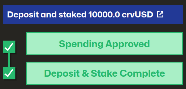 crvUSDwas converted to 9,805 LP tokens, which are currently staked. - We now have